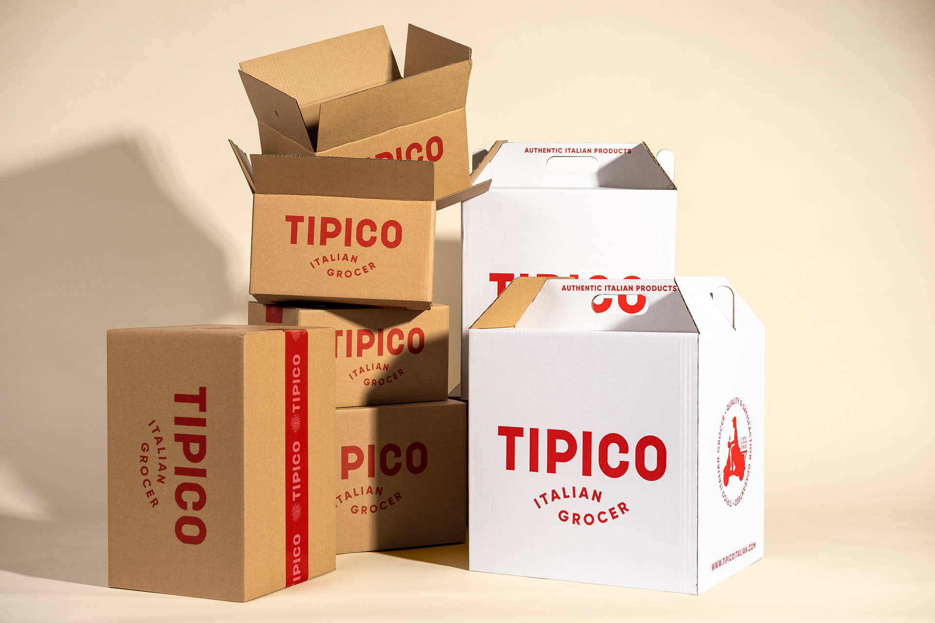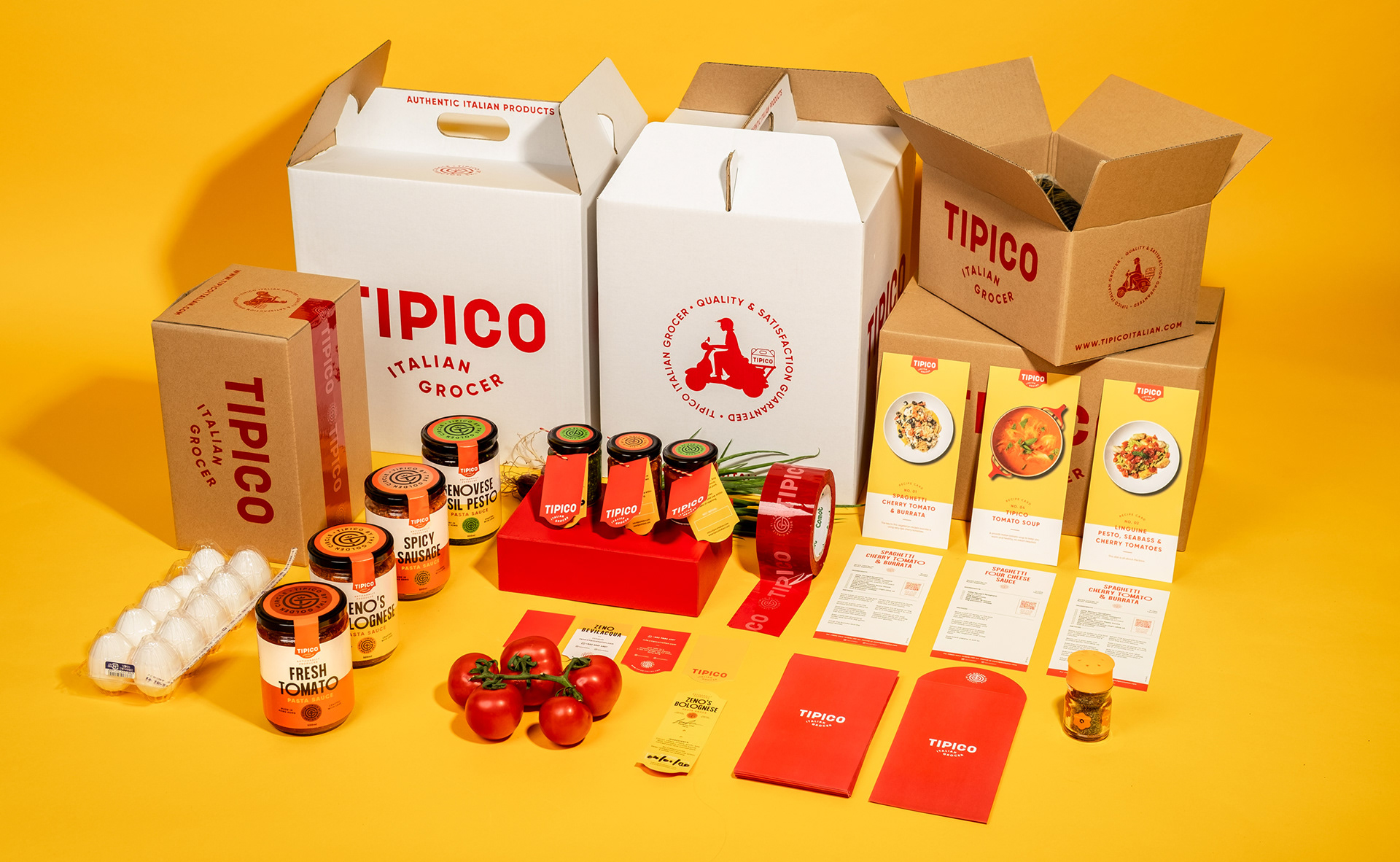 A larger overview of a few of the branded products, packaging and collaterals that are currently in use at Tipico Italian Grocer.