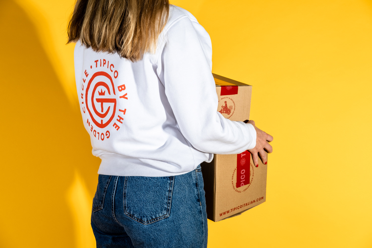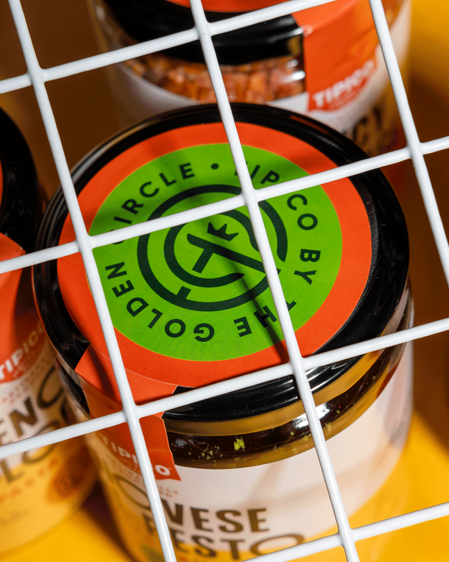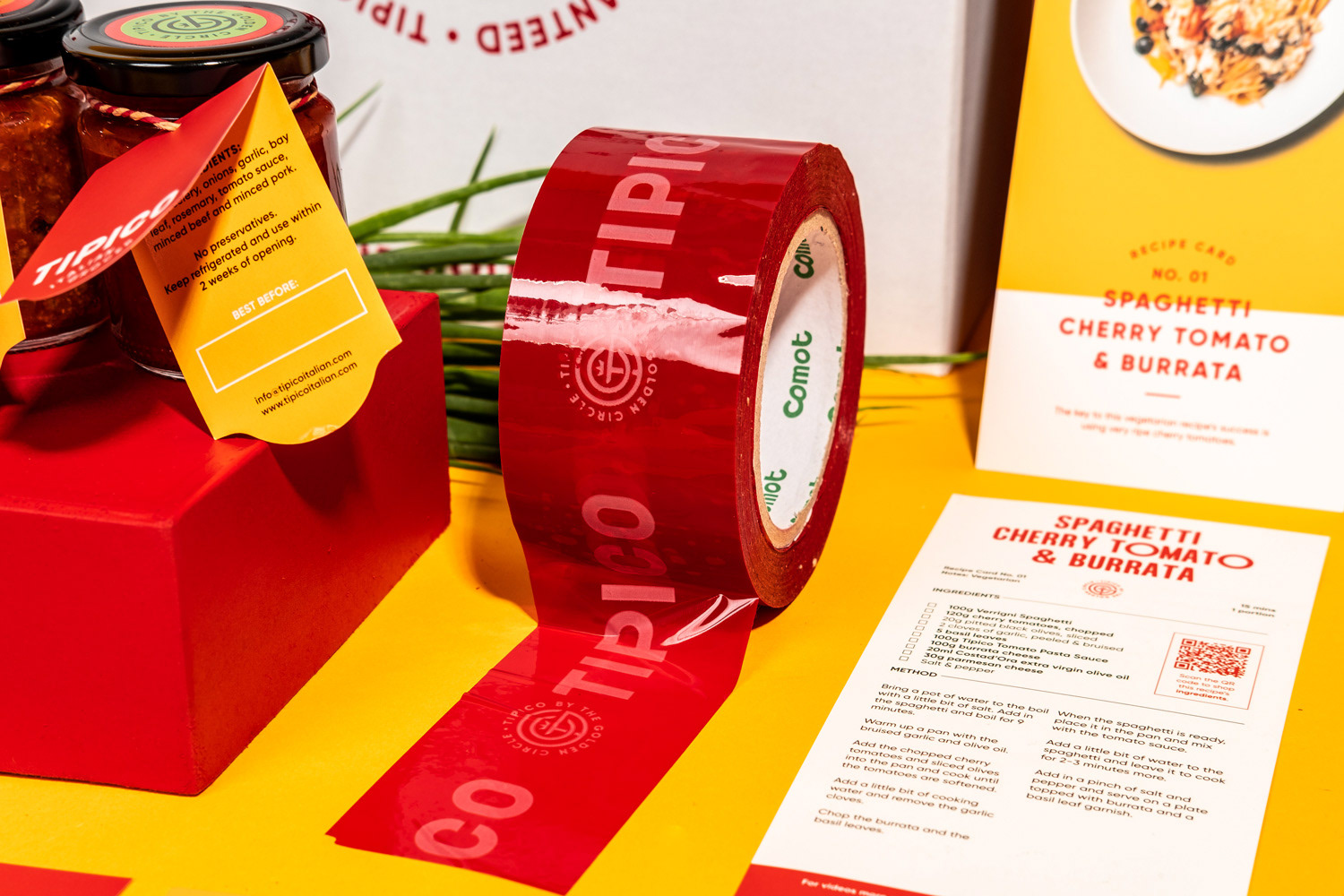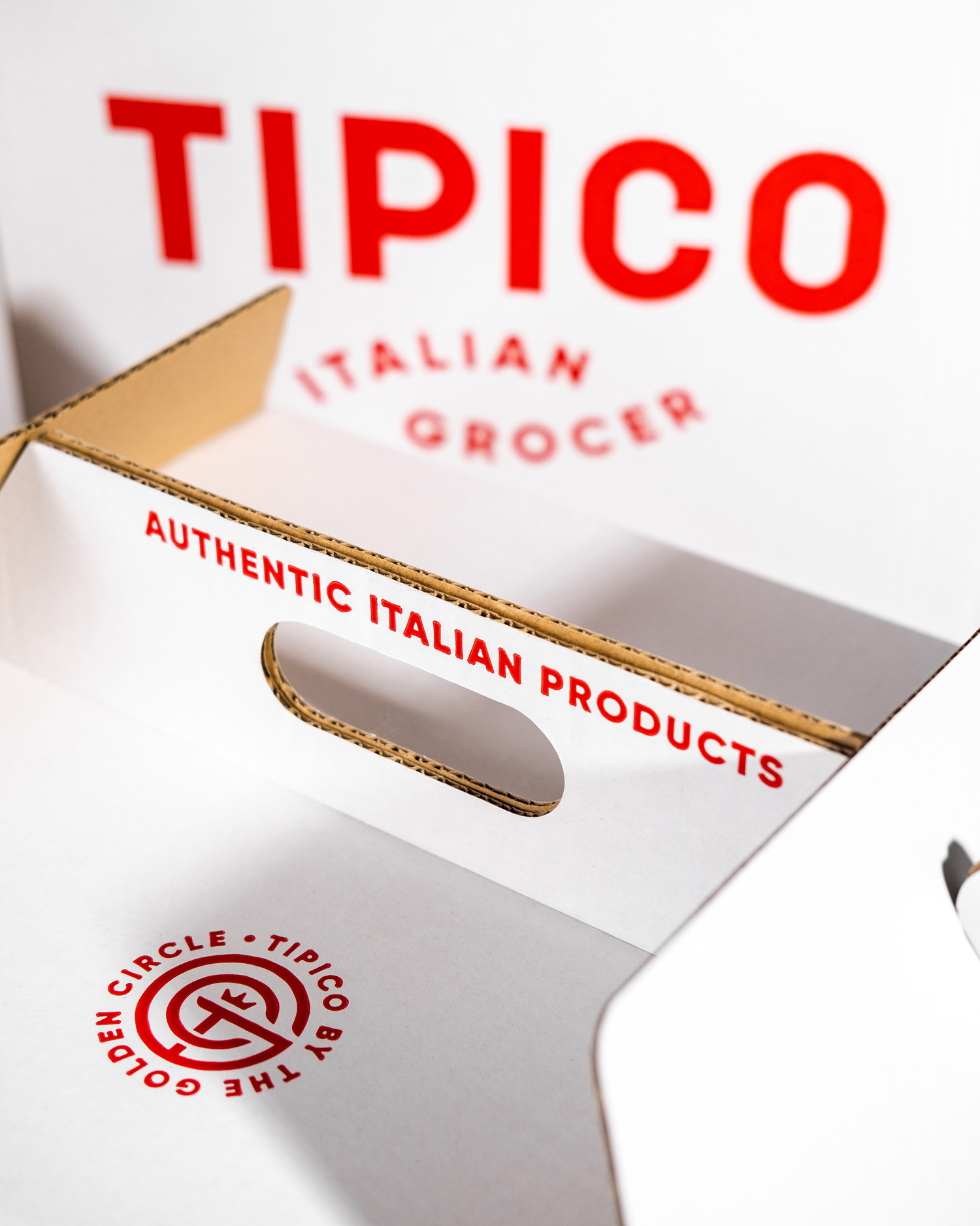 Tipico and The Golden Circle tape was designed to seal each shipment. Applying the brand to items such as this, once again, come from the perspective of the customer's desire for reassurance and trust from an online grocer.